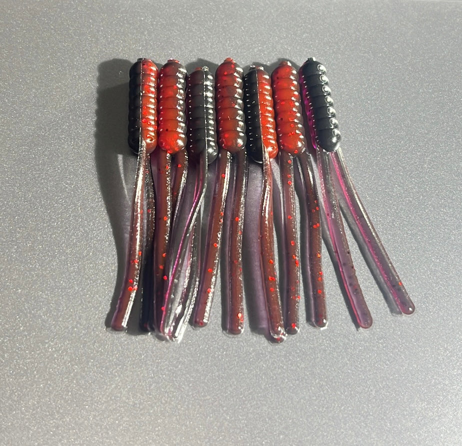 At 1.75”, this finesse bait delivers that signature Split Tail kick, giving off subtle vibration and lifelike darting action that excels in clear, stained, or moving water. Whether you're running it on a 1/32 oz jighead, dropshotting tight structure, or drifting under a float, Gallo Negro hits fish when they’re keyed in on bold, flashy profiles.