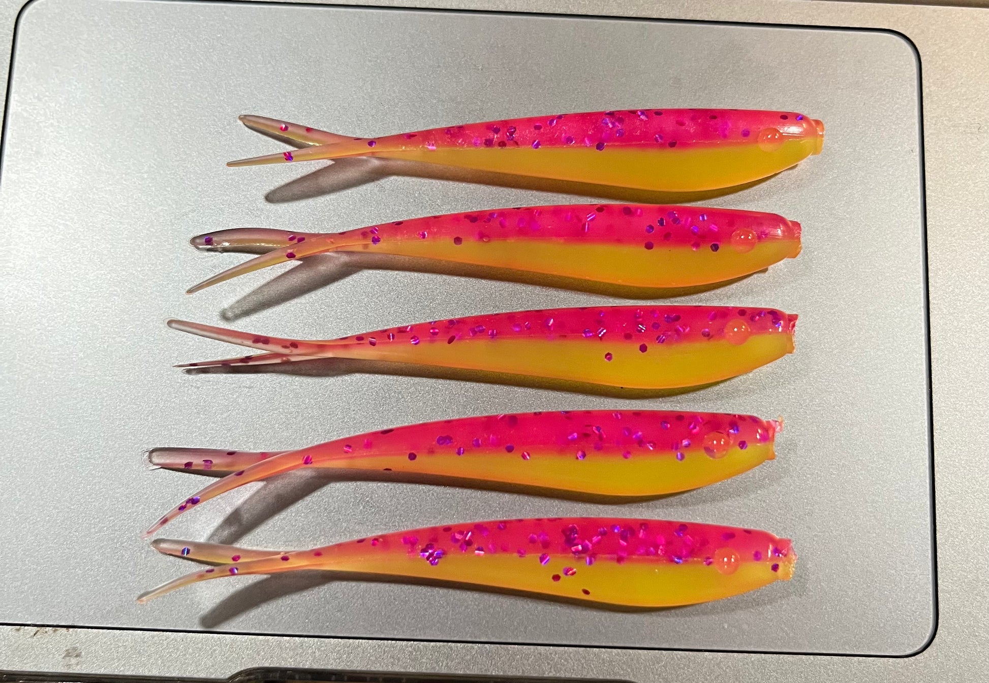 The Toxic Candy 3” Gametight Minnow is engineered to grab attention and trigger reaction bites when nothing else gets bit. With a blazing hot pink back dusted in purple and pink flake and a high-vis chartreuse belly, this bait explodes with color and flash. Built for dirty water, low light, or aggressive feeders, Toxic Candy is a proven strike generator for Spotties, Halibut, and Calicos.